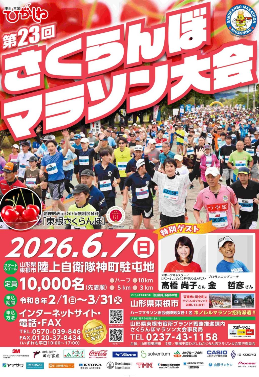 2月1日より、さくらんぼマラソン大会のエントリーが開始されました。 参加者賞としてGI「東根さくらんぼ」佐藤錦などをプレゼント! マラソンコース上のエイドステーションで...